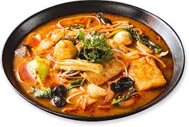국물은 보통 사골 육수를 기본으로 하며, 마라 소스와 향신료를 더해 진하고 얼큰한 맛을 냅니다.